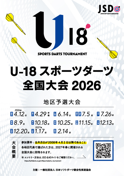 詳細については、こちらをご確認ください。→U-18スポーツダーツ全国大会2026 |